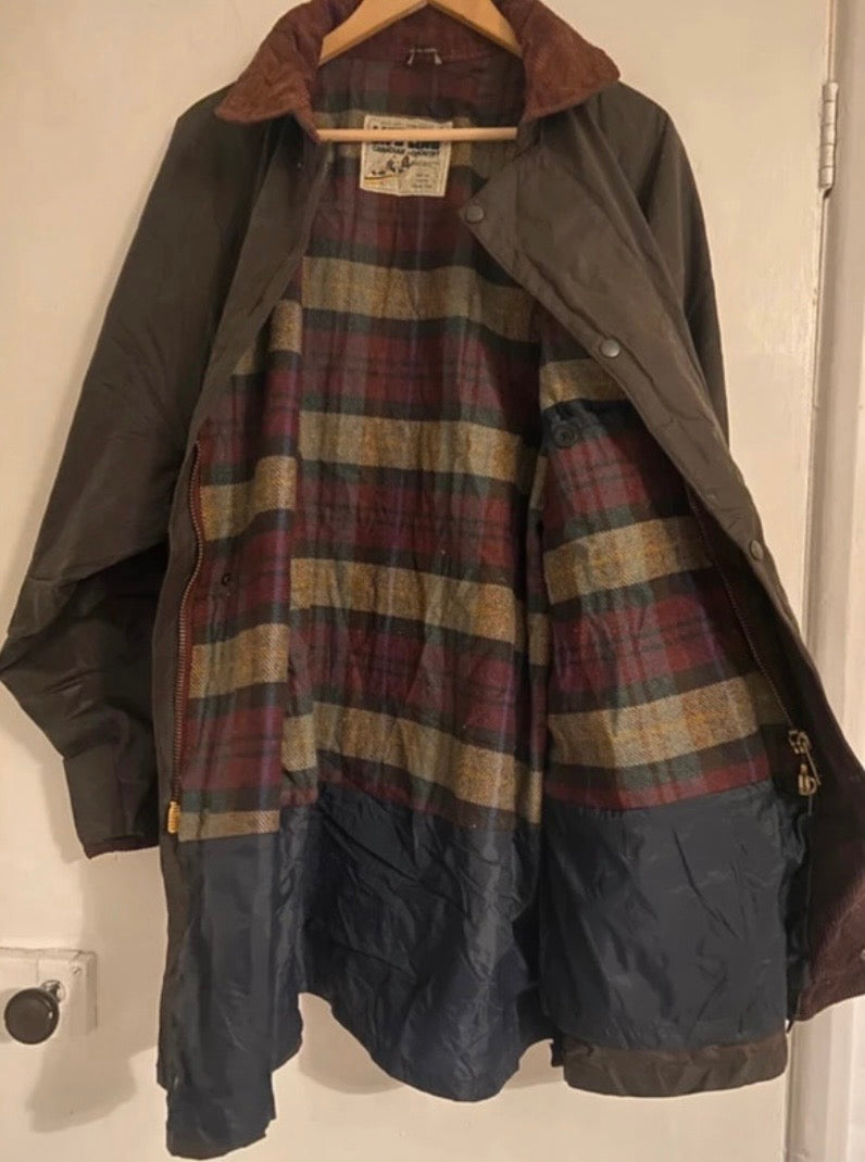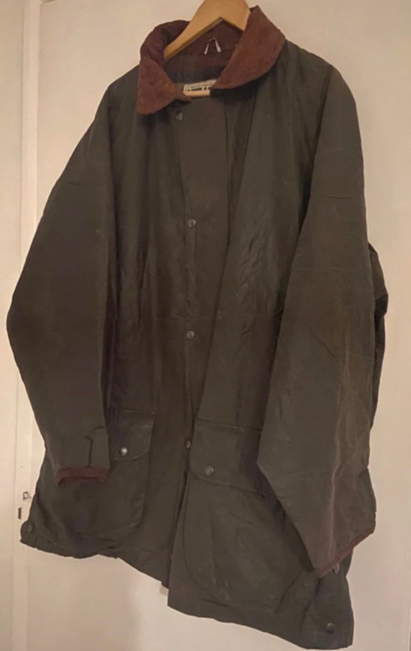 Cotton Wax Jacket Green, Vintage, English, 3XL (Vintage size is XL)
